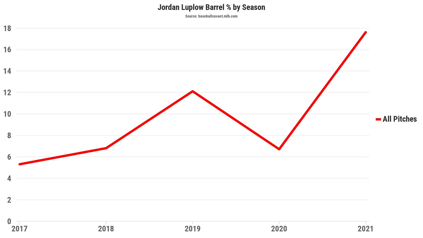 Lucky for Luplow, the exit velocity (89.6 mph) is up 6.1 percentage points from last year and on par with when he was living rent-free in the head of every southpaw during the 2019 campaign. More important, though, the percentage of balls that he is hitting at 95 mph or harder (Statcast calls this hard-hit rate), has never been higher. His hard-hit rate (41.2%) is up over 16 percentage points from last year and two percentage points from when things went well in 2019.